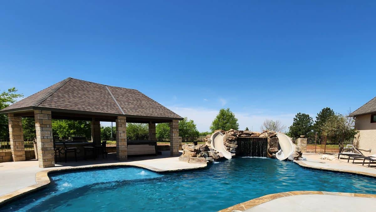 Welcome to our Freeform Pool Gallery, where organic shapes and flowing lines create a serene and inviting atmosphere. This collection features stunning freeform pools that blend seamlessly with your landscape, offering a unique aquatic escape. Our talented pool builders in Edmond and swimming pool contractors in OKC specialize in designing pools that reflect your personal style while maximizing relaxation and enjoyment. Explore our gallery to find inspiration for your dream pool, and let us help you create a backyard oasis that feels like a natural retreat!